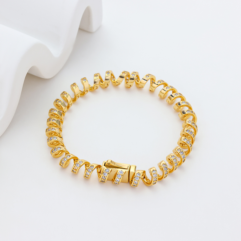 Twisting the bracelet produces a rotating shimmer, like turning a golden spring in sunlight