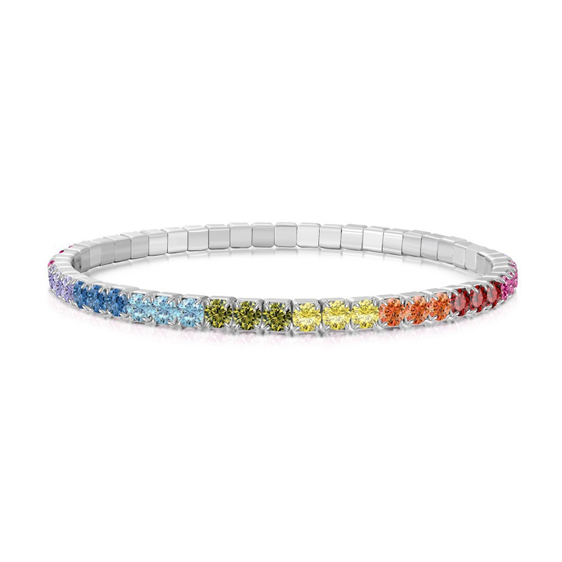 | Glitter rainbow tennis bracelet jewelry | The rhodium plated tennis bracelet for women with multi colored cz rhinestone that can match your outfits on any occasion for everyday and elegant evening dresses, wedding, party |